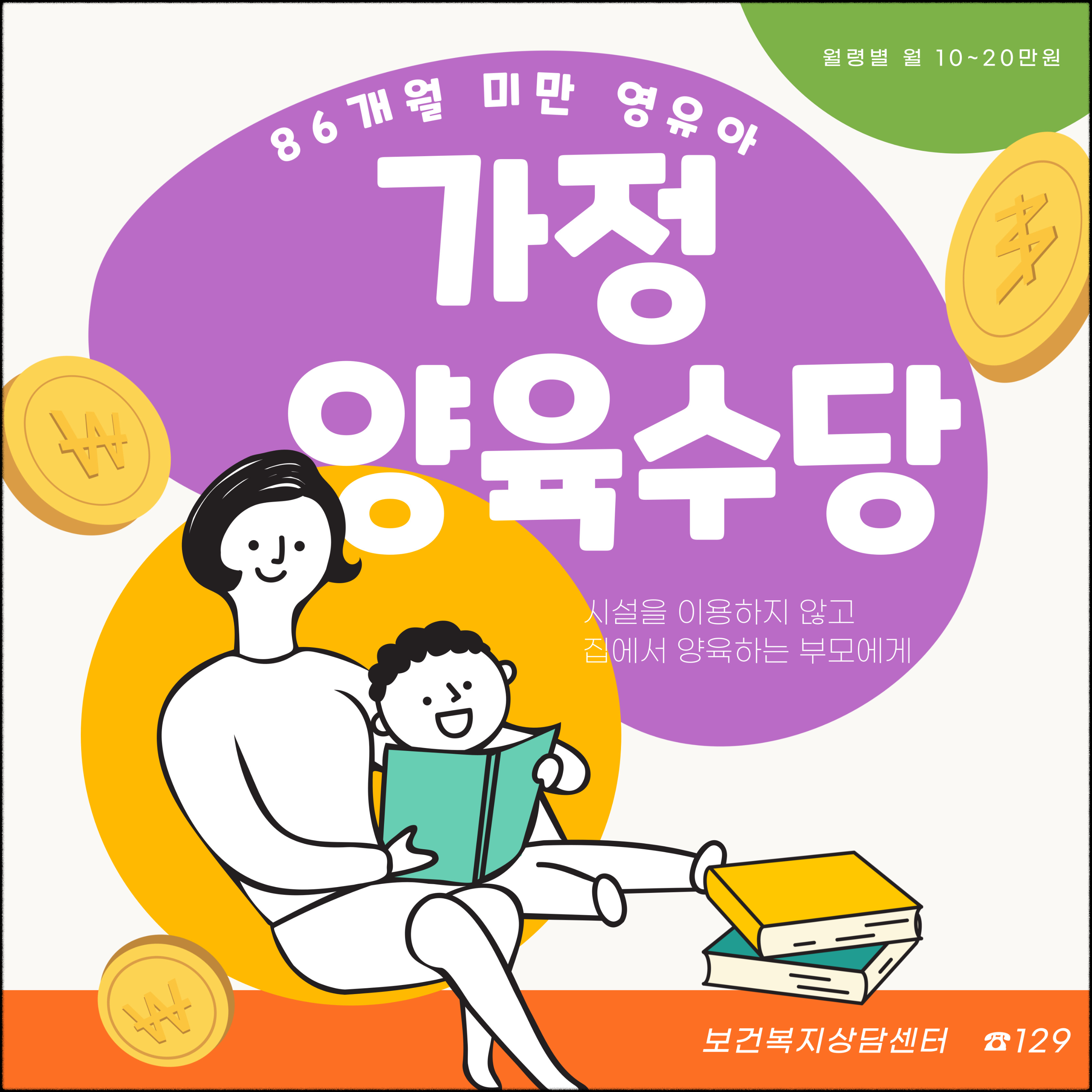 - 월령별 월 10∼20만 원 가정양육수당 지원