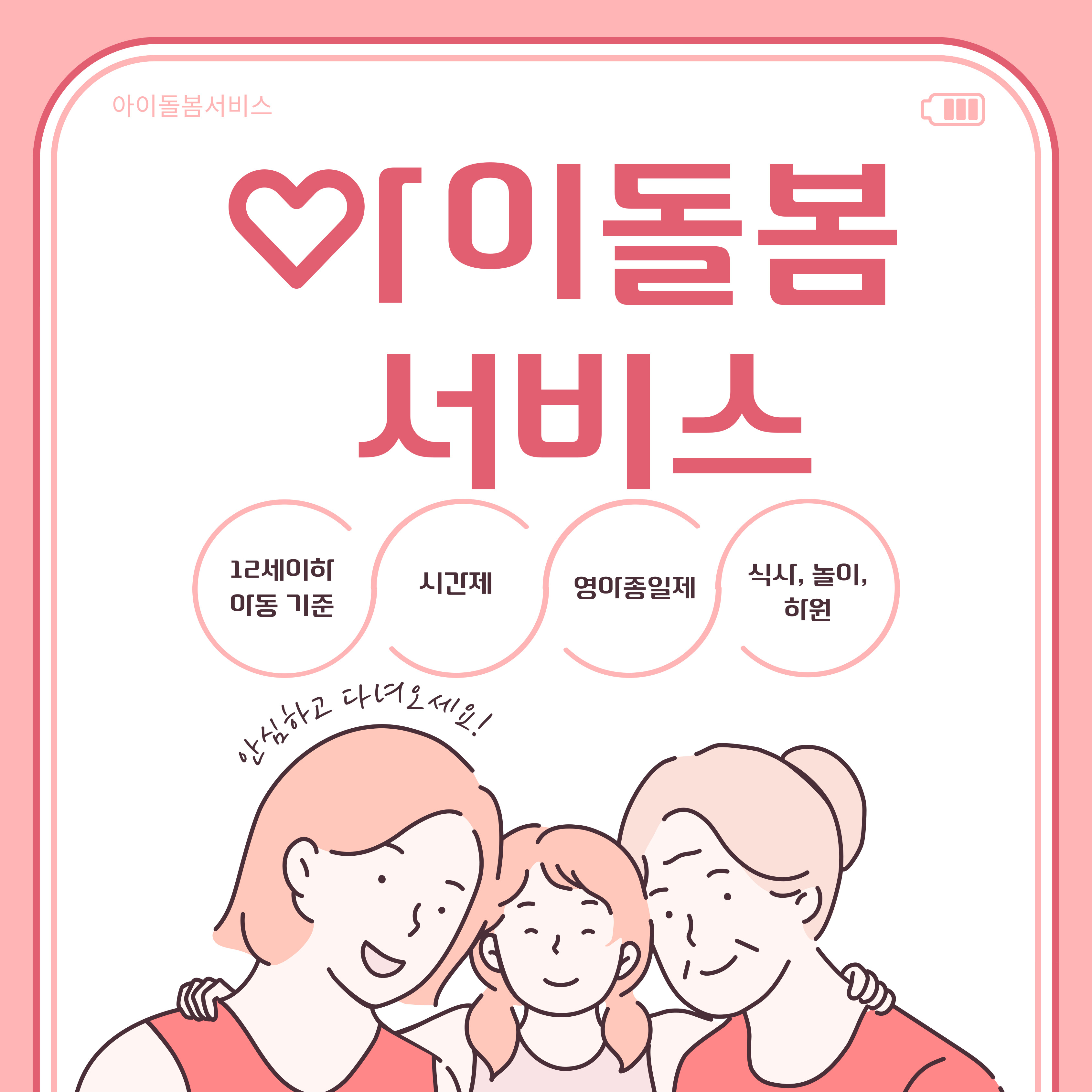 - 아이돌보미가 집으로 찾아가 돌봄서비스 제공(시간제 및 종일제)