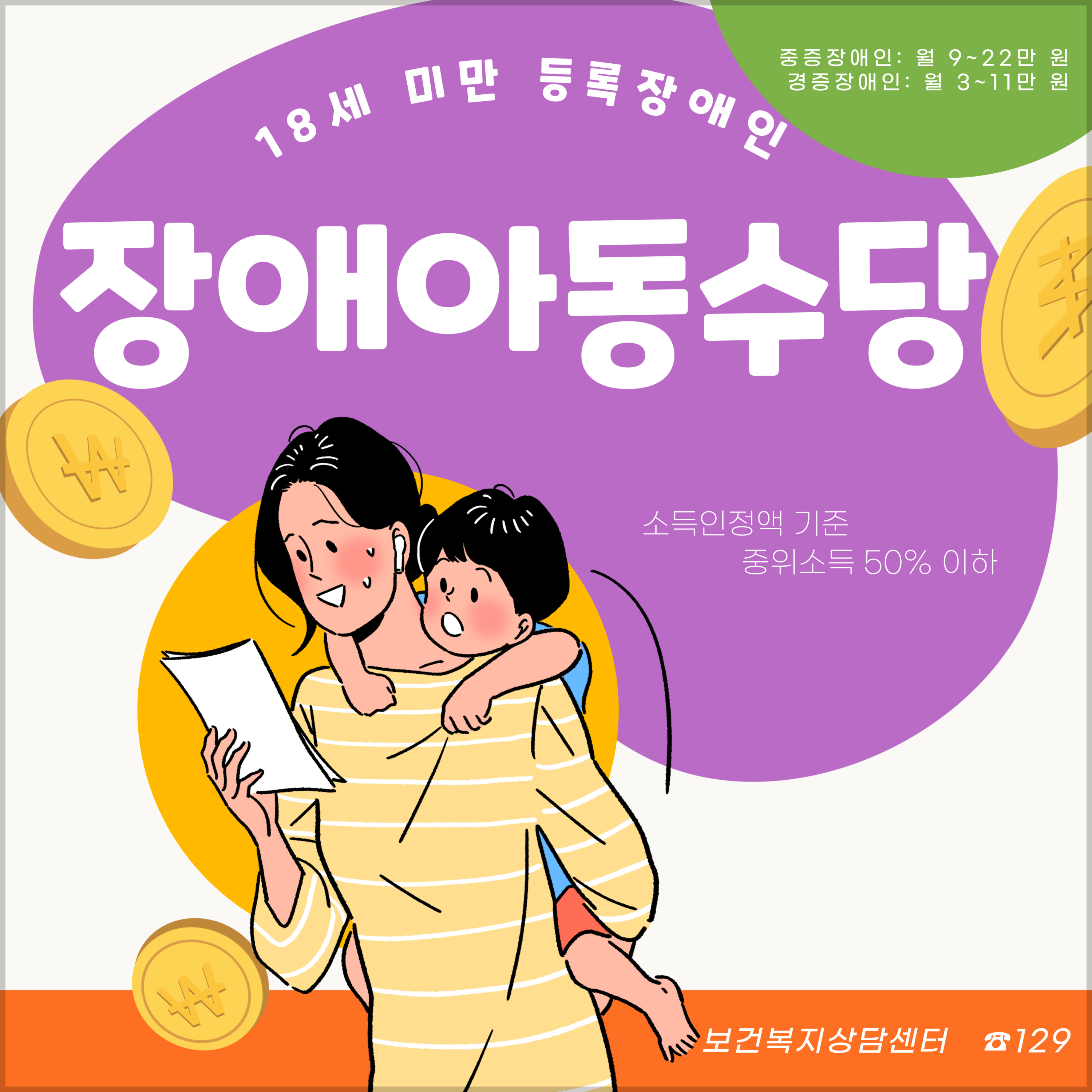 생활이 어려운 장애아동이 안정적으로 생활할 수 있도록 매달 일정 금액을 지원하는 제도입니다.