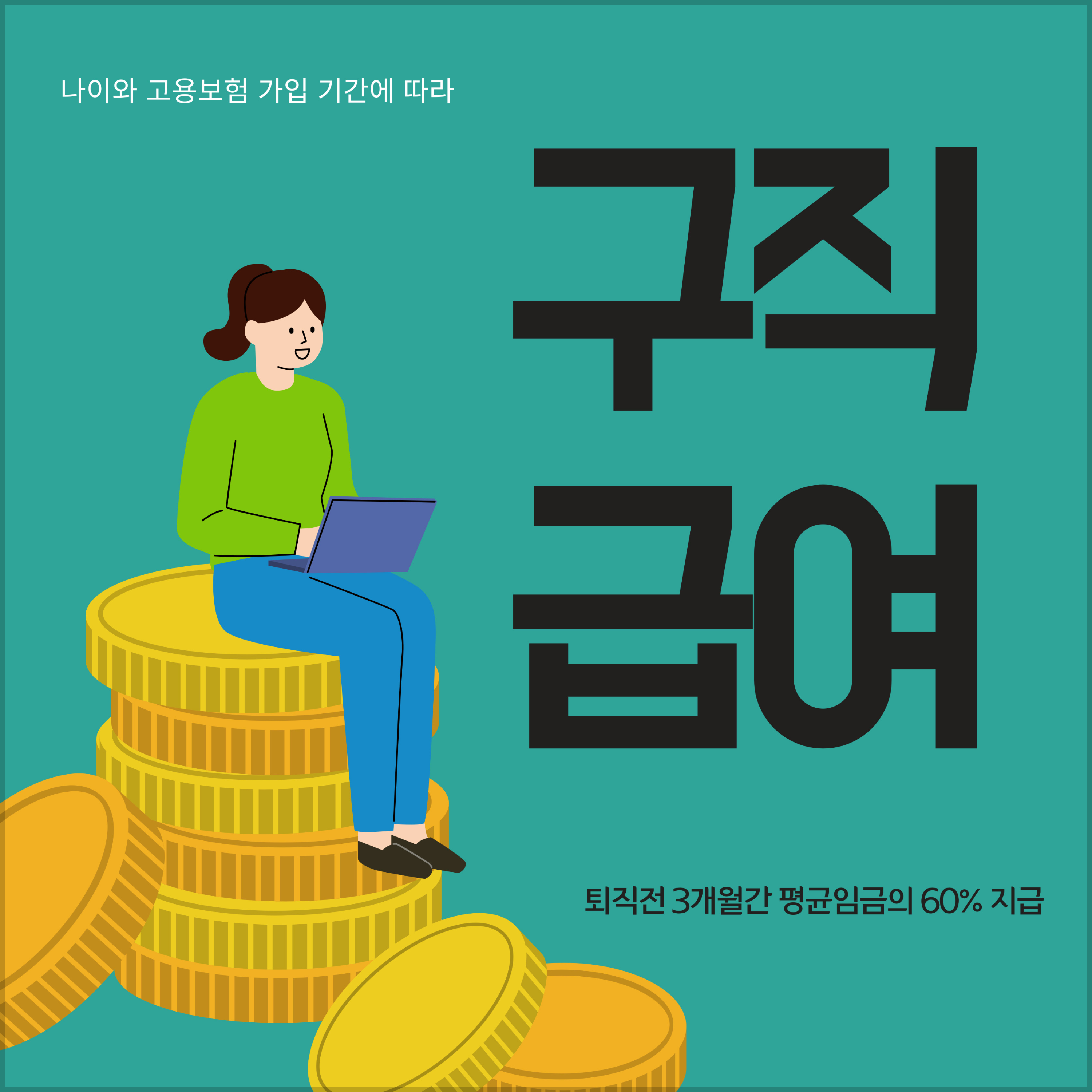 - 퇴직 당시 나이와 고용보험 가입 기간에 따라 120~ 270일간 퇴직 전 3개월간 평균임금의 60% 지급