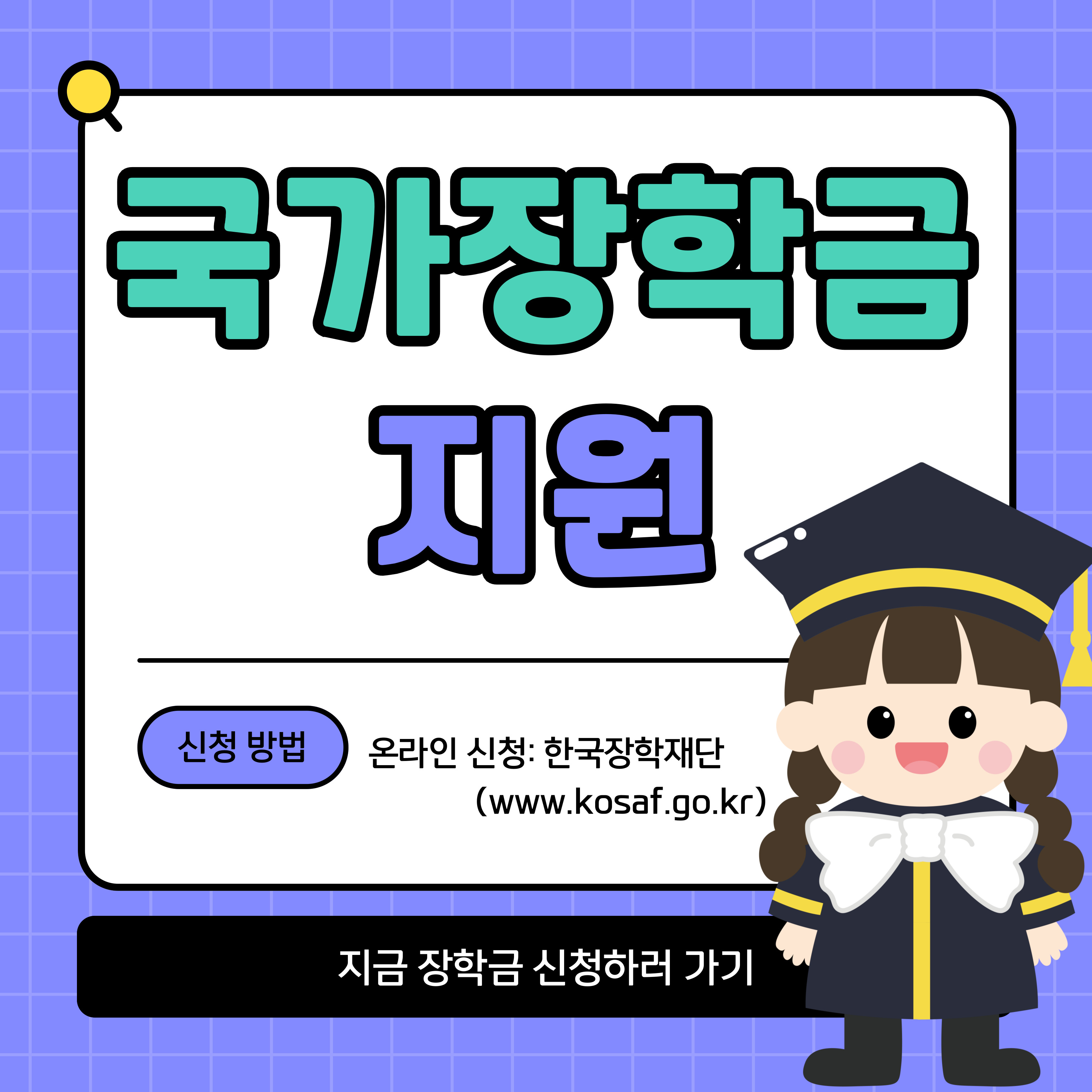 - 온라인 신청: 한국장학재단(www.kosaf.go.kr)